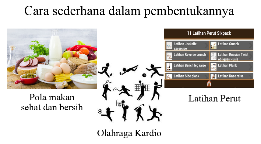- Latihan perut yang dilakukan setiap hari dengan diselingi oleh olahraga kardio seperti sepakbola, basket, renang dll